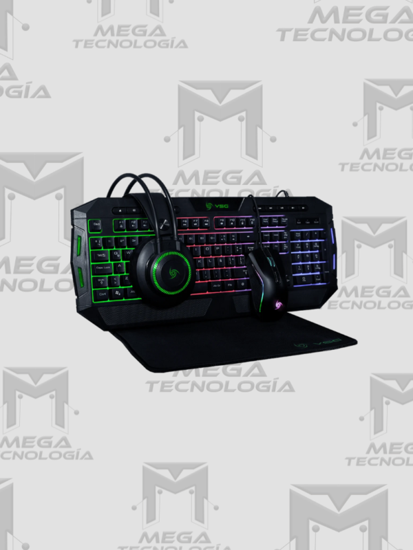 KIT GAMER CRUX VSG 4 EN 1 TECLADO + MOUSE + AUDÍFONOS + PADMOUSE CON CABLE (VG-KMH677)