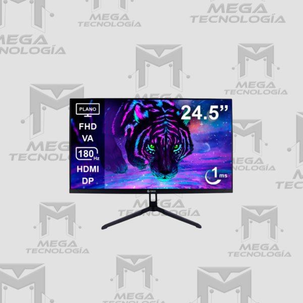 Monitor plano 24.5″ FHD (1920×1080), panel VA, 180Hz, 1ms, HDMI. Perfecto para juegos rápidos con FreeSync y diseño gamer compacto.