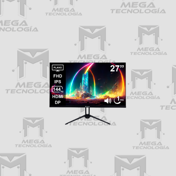 Monitor plano 27″ FHD, panel IPS, 144Hz, 1ms, HDMI y DisplayPort. Ideal para juegos con FreeSync, HDR y altavoces integrados.