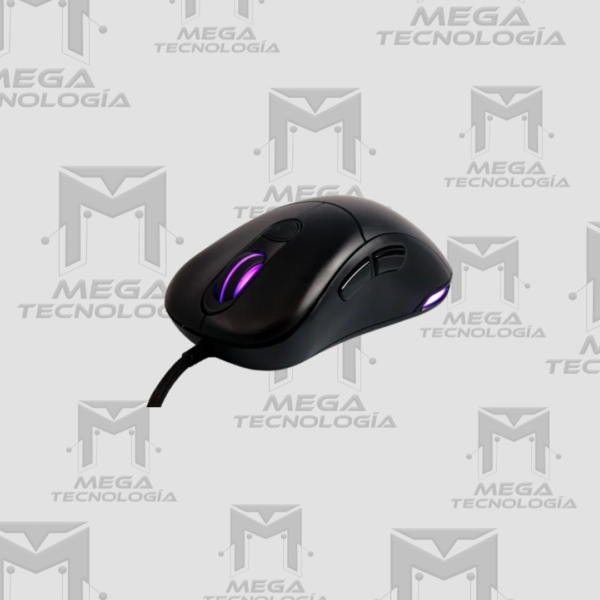 Mouse gamer alámbrico con sensor óptico PMW3360, resolución ajustable hasta 12,000 DPI, tasa de sondeo configurable (125/250/500/1000 Hz), tiempo de respuesta de 1 ms. Iluminación RGB con 16.8 millones de colores y 5 efectos. Interruptores Omron con durabilidad de hasta 20 millones de clics. Diseño ergonómico, peso de 80 g, cable USB 2.0 de 1.8 m. Compatible con Windows mediante software de configuración. Dimensiones: 66 × 120 × 42 mm. Ideal para gaming competitivo y precisión avanzada.