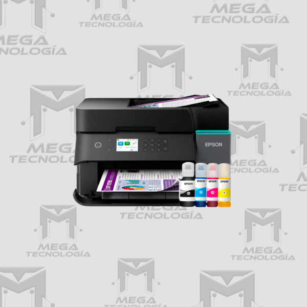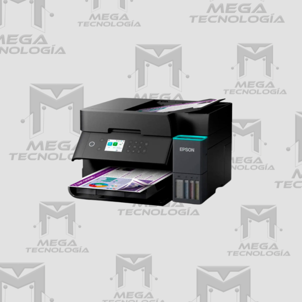 Multifuncional Epson EcoTank L6370 con impresión, escaneo y copiado. Resolución de hasta 4800×1200 dpi, velocidad ISO de 18 ppm en negro y 9 ppm en color. Conectividad Ethernet, Wi-Fi dual band, Wi-Fi Direct y USB. Impresión dúplex automática, alimentador automático de documentos (ADF) de 30 hojas. Pantalla LCD a color, compatible con app Epson Smart Panel. Rendimiento estimado: hasta 8,500 páginas en negro y 6,500 en color por carga.